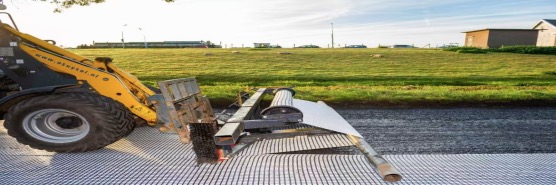 *Thermal stability – The melting point of glass fiber yarns is above 1000℃, which ensures the thermal stability of the Asphalt Grid during the paving operation.